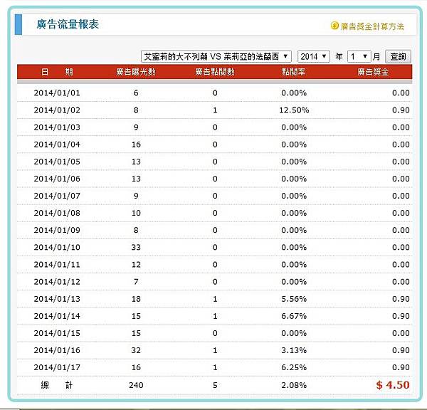 雖然BlodAD還有另外一種曝光式的獎金計算方式,霸特,他規定要每日曝光數達到5000以上才可以選擇,五千耶是要逼死誰TOT
