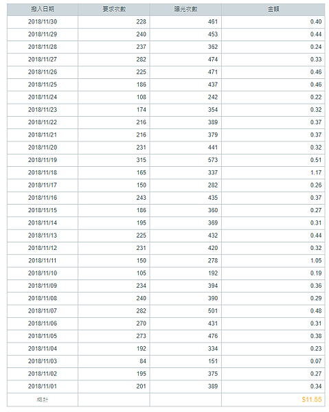 2018.12.02更新 11月總收入11.55元(大概是歷史新高...)